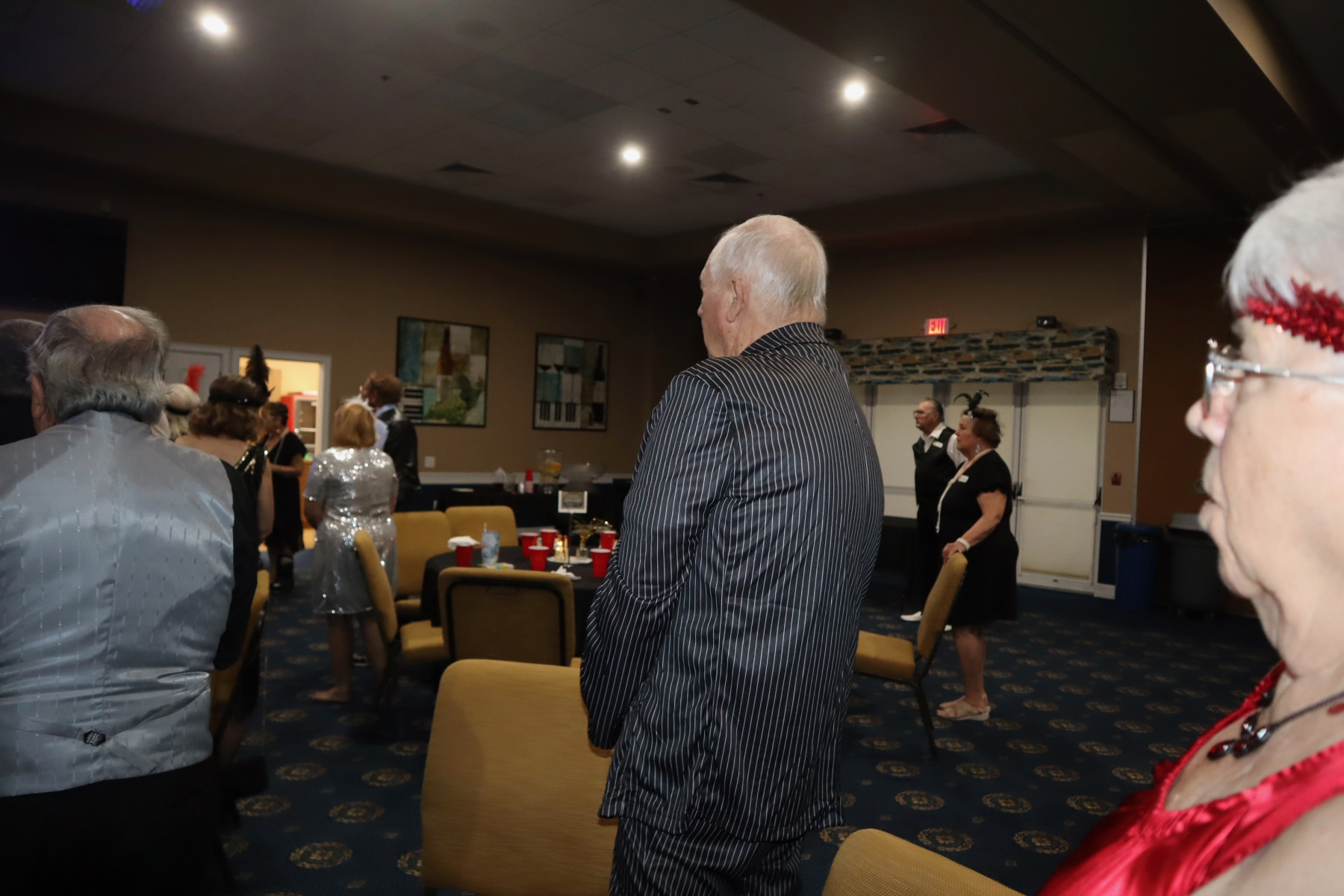 On March 10th, the members of the Midwest Club entered a time machine (the Aberdeen and Banyon Rooms) and emerged in the Roaring 20s at the mansion of the mysterious millionaire, Jay Gatsby. All the cool cats and fancy flappers were dressed in appropriate attire and enjoyed dancing the night away with “Charleston” lessons from members, Curt and Wendy Johnson. Hostesses, Glenda Schmit, Terry Kondoleon, and Mary Kay Danecki kept the evening lively with 1920s trivia, and everyone enjoyed the delicious food prepared by the “it crowd” of members and guests.